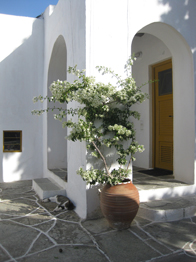 The breathtaking view to the east, in the direction of Paros, overlooks the blue Aegean Sea.